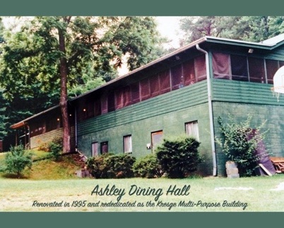 The Camp Potomac Woods dining hall was first built in 1948, and was originally called Ashley Hall in honor of Mr. E. Evert “Jack” Ashley and Mrs. Ruth Ashley for their leadership in the development of Camp Potomac Woods. Mr. Ashley was the first GSCNC (interm) President. The 1948 kitchen was rebuilt in 1954.