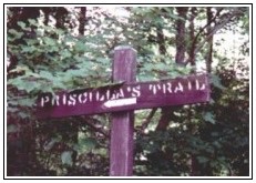 Patricia Butt's troop blazed Priscilla's Trail from the parking lot to Ridge Lodge, deciding where to place the trail, clearing the underbrush and branches, and building the walking bridge over the swampy area near Packers' Point (a campsite which no longer exists). The bridges down near the Potomac River end of Priscilla's Trail were built by Boy Scouts.